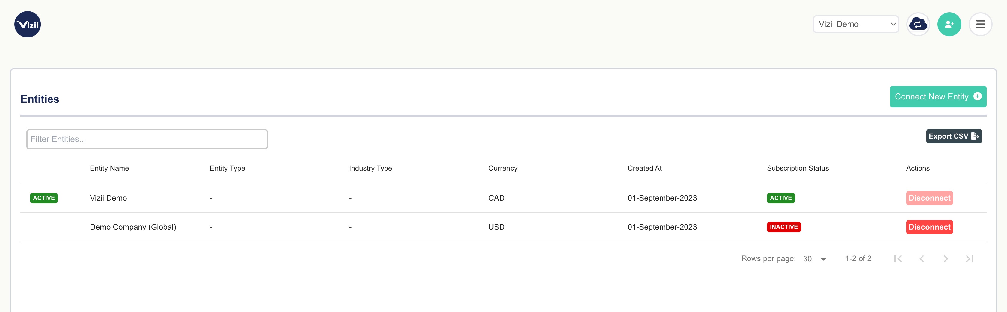 Once completed, the entity will be added to the top drop-down entity selection list on your top right. You can now switch between different entities anytime.